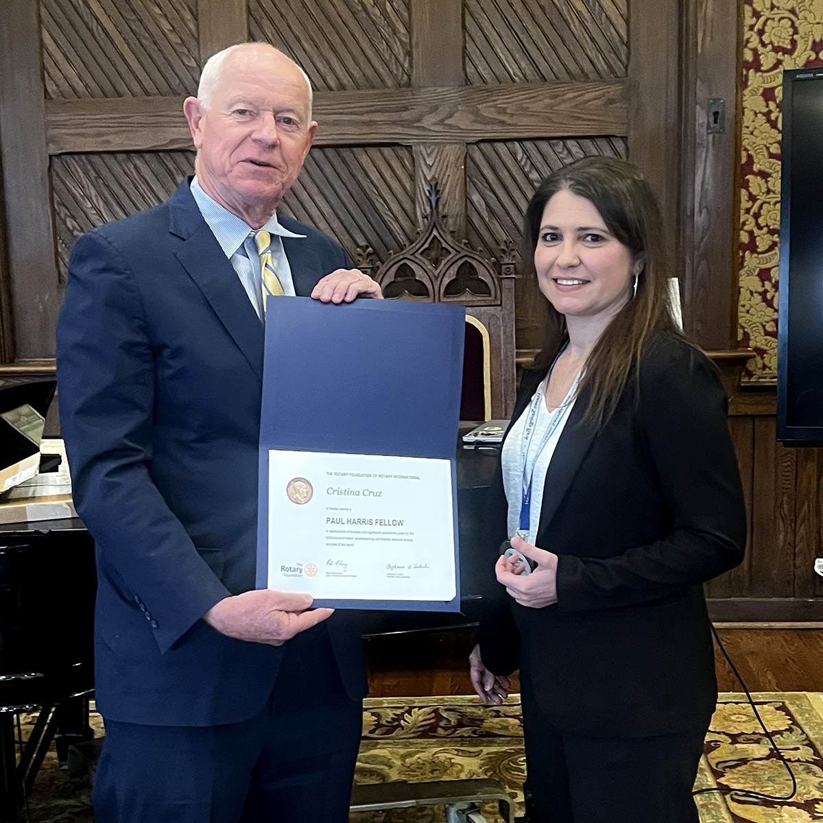 The Rotary International Paul Harris Fellow Award is one of the organization’s highest recognitions for individuals who demonstrate outstanding service or support Rotary’s humanitarian work.